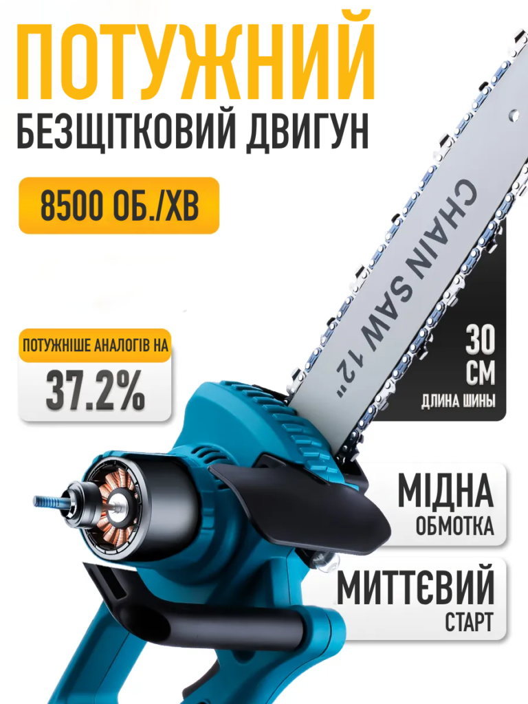 Безщітковий двигун забезпечує 8500 об/хв, працює ефективніше завдяки мідній обмотці та має продуктивність на 37.2% вищу, ніж у аналогів. Миттєвий старт дозволяє приступити до роботи без затримок.